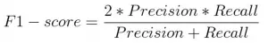 接下来,我们将使用F1分数来评估这个模型。F1分数是精度和召回率的调和平均值,公式如下: