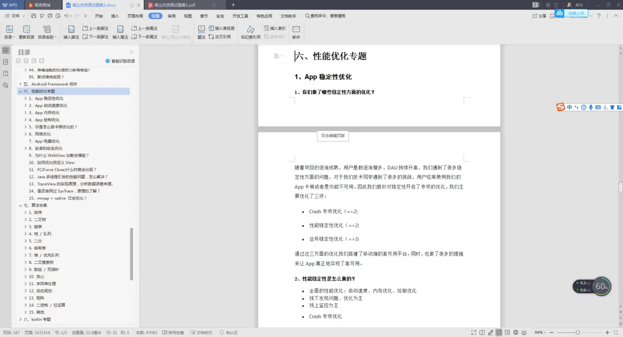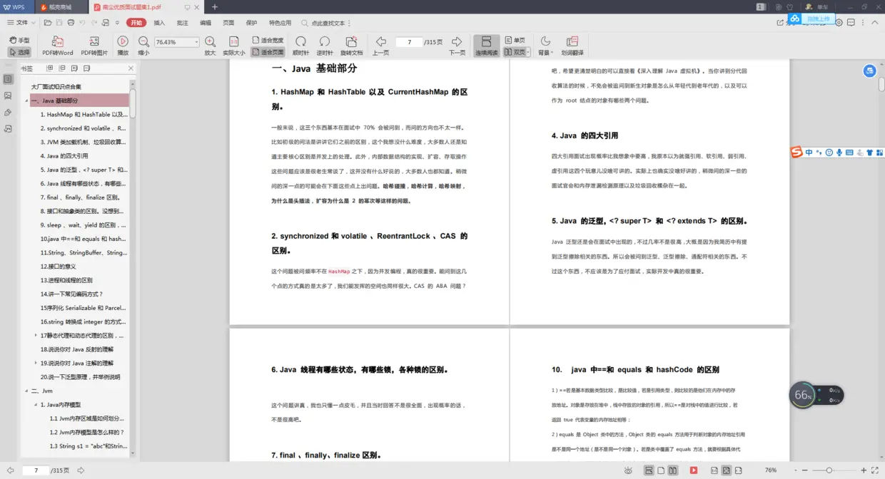 由于LZ平日有着较为良好的积累的习惯,会把网上一些优质的面经、大厂真题收集整理起来,所以,从小长离职后,我就将自己平时收集的面经真题系统的复习,消化了一遍。吃透这份PDF花了我半个多月时间。之后便先后收获了阿里、字节跳动、美团等多家大厂的offer。