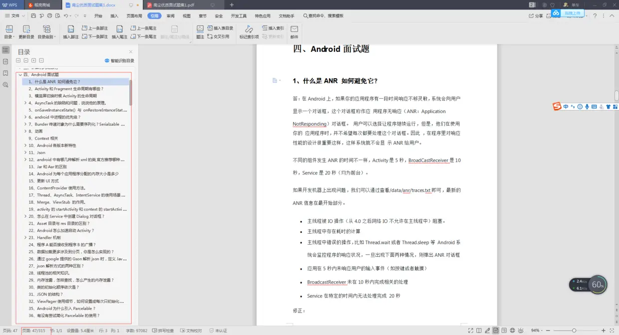 想到很多和我一样的在2020年有跳槽的想法的人。所以,我针对Android中高级开发者面试跳槽的需要,,我将自己近两年来收集整理的《Android 中高级面试真题集锦》分享出来,可以省去大家不少时间去搜集整理,提高面试准备效率。
