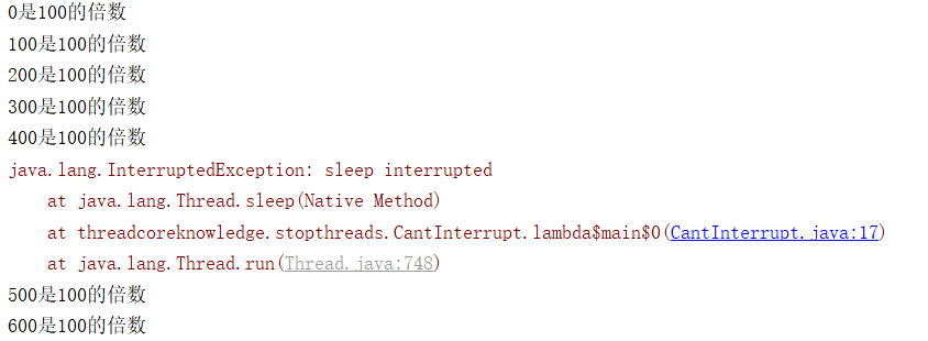 注意到if (num % 10 == 0)没有!Thread.currentThread().isInterrupted()的判断,因为中断都被catch住了.