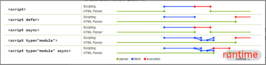 从图中可以知道,采用3种属性都能减少请求文件引起的阻塞时间,只有defer属性及 type="module" 情况下能保证渲染引擎的优先执行,从而减少执行文件内容消耗的时间,让用户更快地看见页面(即使这些页面内容可能并没有完全显示)。