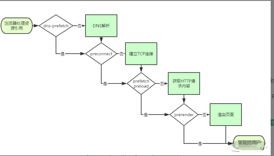- prerender 浏览器不仅会加载资源,还会解析执行页面,进行预渲染。