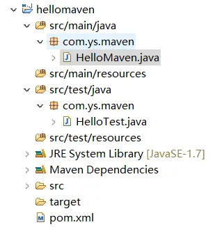 ②、在 src/test/java 新建包 com.ys.maven,然后在这个包中创建类 HelloTest.java