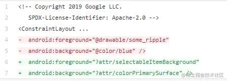 你可能注意到,有些属性由 ?android:attr/foo 引用,而其他的则为 ?attr/bar 。这是因为它们中的部分是由 Android Platform 定义的,因此您需要 android前缀通过命名空间引用它们(就像 layout 中 view 的属性:android:id)。那些不是来自静态库(即 AppCompat 或 MDC ),它们已编译到您的应用程序中,因此不需要名称空间(类似于您在布局中使用 app:baz 的方式)。一些元素在 platform 和 library 均有定义(例如 colorPrimary)。在这种情况下,最好使用非平台版本,这样可以在所有 API 级别上使用。例如它们是在 library 中重复定义恰好目的是为了向后兼容。在这些情况下,我已在上面列出了非平台版本