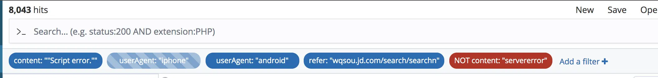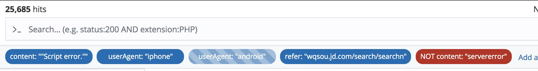 我们最初的日志系统的界面是自己搭建的,使用 url 作为关键字进行查询 badjs。