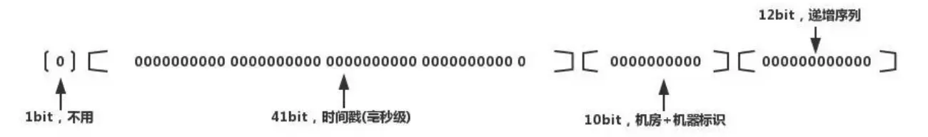 41位时间戳:41位时间戳不是存储当前时间的时间戳,而是存储时间截的差值(当前时间截 - 开始时间截 )得到的值,这里的的开始时间截,一般是我们的id生成器开始使用的时间,由我们程序来指定的