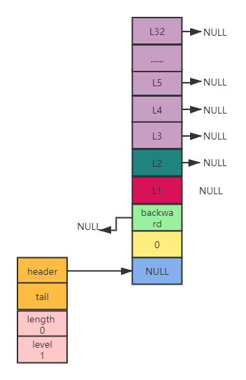其对象值为空,level数组为32层,目的是为了管理真正的数据节点。关于具体的level有哪些属性放在数据节点来说。
