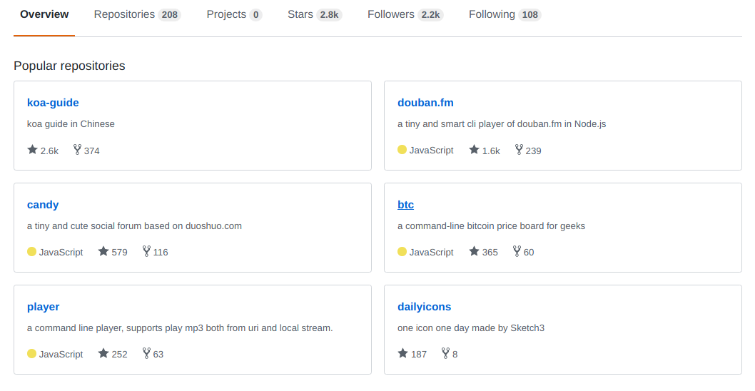 翻译Koa文档,开发4-5款受到社区认可的项目:candy、douban.fm等。