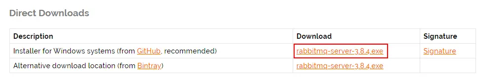 Erlang 安装成功后,就可以安装 RabbitMQ 了。下载地址如下所示: