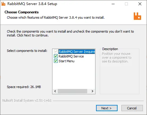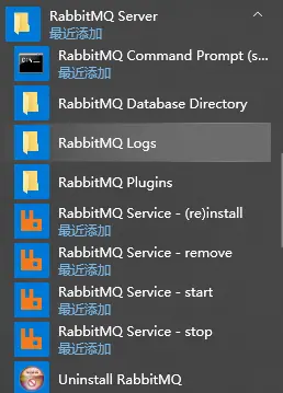 安装成功后,就可以将 RabbitMQ 作为 Windows 服务启动,可以从“开始”菜单管理 RabbitMQ Windows 服务。