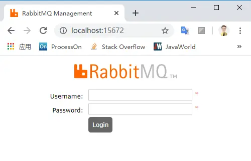 在浏览器地址栏输入 http://localhost:15672/ 可以进入管理端界面,如下图所示: