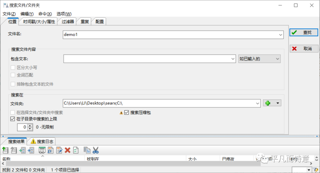 在FreeCommander的文件搜索功能中,你可以指定搜索路径、磁盘,可以排除不想要的文件。此外,还可以查找重复文件。