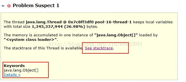 通过Memory Analyzer分析,在Leak Supects Report 视图中,有如下分析结果: