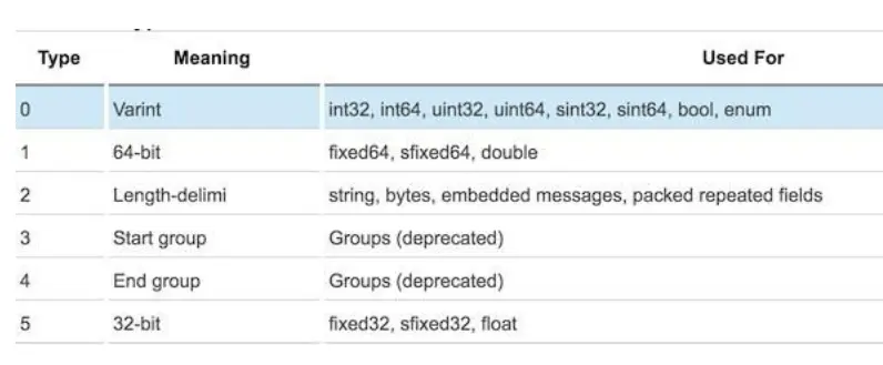 (field_number << 3) | wire_type - field_number就是.proto中属性的数字,wire_type就是类型如下图
