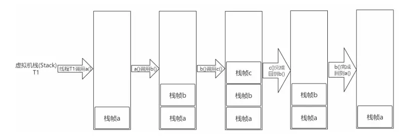 每一个被线程执行的方法,为该栈中的栈帧,即每个方法对应一个栈帧。调用一个方法,就会向栈中压入一个栈帧;一个方法调用完成,就会把该栈帧从栈中弹出。