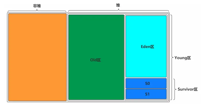堆区分为两大块,一个是Old区,一个是Young区