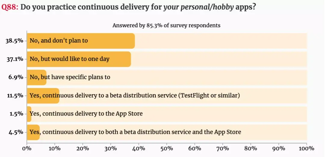 iOS开发者社区调查是迄今为止对苹果平台开发者进行的最大规模的调查,共有2290人填写了问卷,CI/CD问题也是调查的一部分。