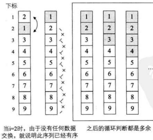 那么我们就可以用一个变量来记录是否进行交换过. 只要这个记录表示没有交换过, 那么之前的数据也就是已经排序过的