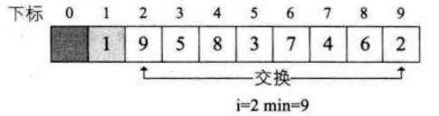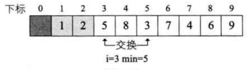 - 遍历完成后, 将i数据与min数据进行交换
