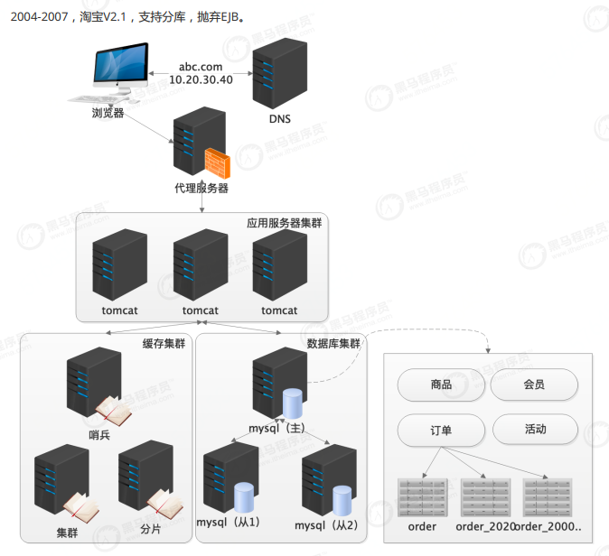 我们以淘宝的发展为例,来看以下架构的演进过程。
