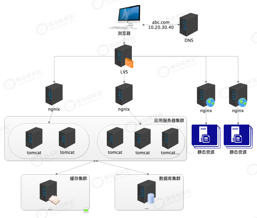 1,静态响应:tomcat对于静态文件的响应性一般,则提取静态文件直接有Nginx代理服务器响应。