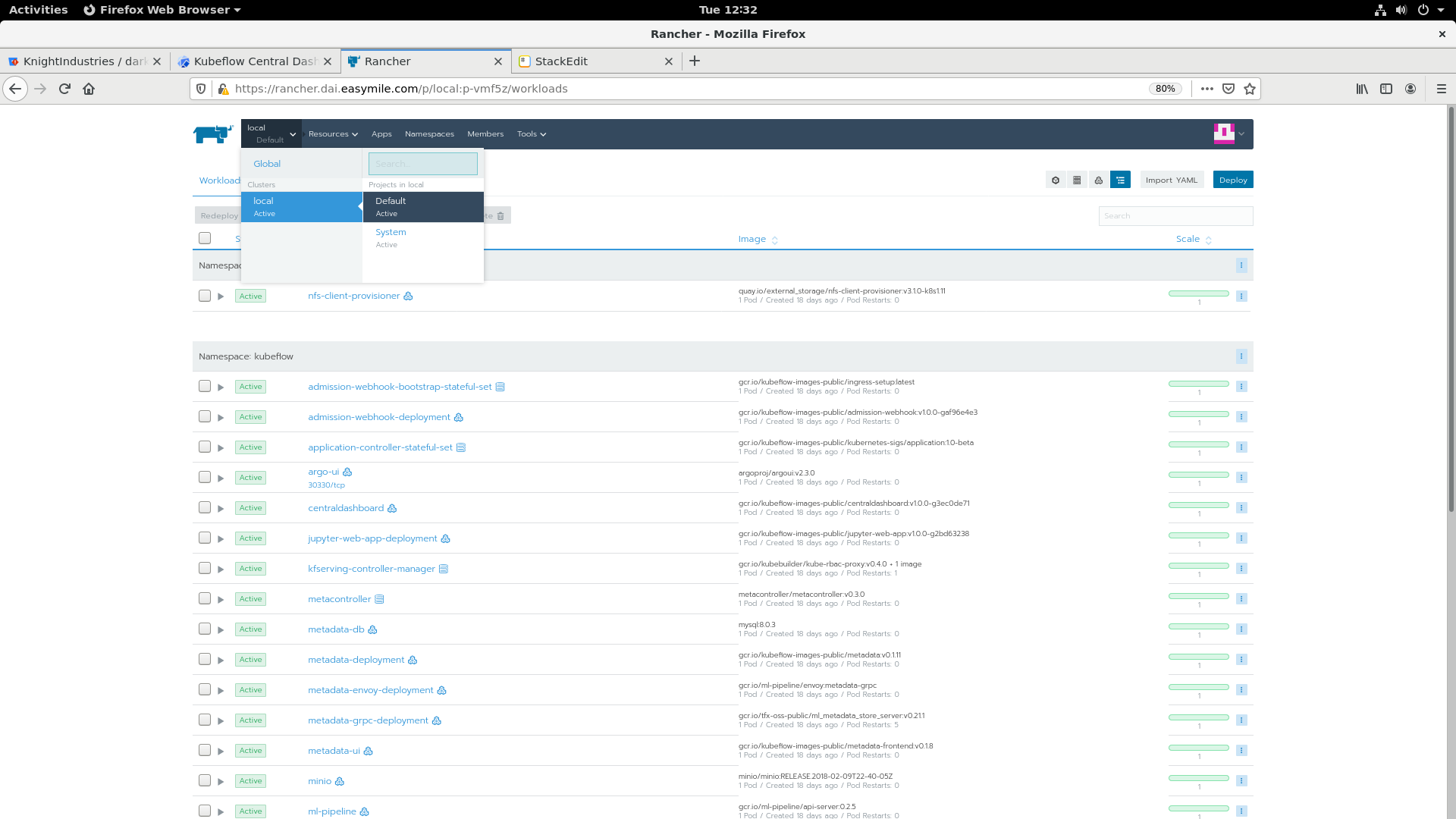 访问Rancher界面。在左上角,选择local,然后选择二级菜单的Default: