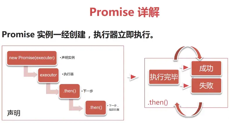 当executor(可能是一个耗时很长的操作)执行完毕,根据是resolve还是reject执行then里面的方法,