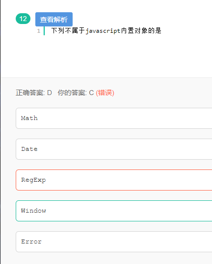 - (1)内置对象: Arguments Array Boolean Date Error Function Number String Regexp Math Object