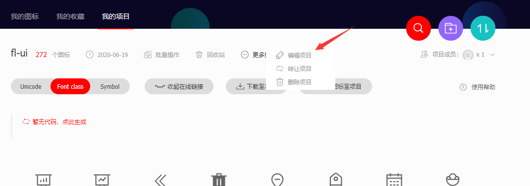 vue中使用下载的iconfont 百问 2020-06-19 230 阅读1分钟 第一步 选择图标,添加进项目 可以对项目进行自定义的编辑 如图 第二步 找到对应的项目,点击下载至本地 第三步 复制到对应的项目目录下 选择以下三个文件,然后复制到你的项目下 如图: 第四步 对字体的css文件进行修改