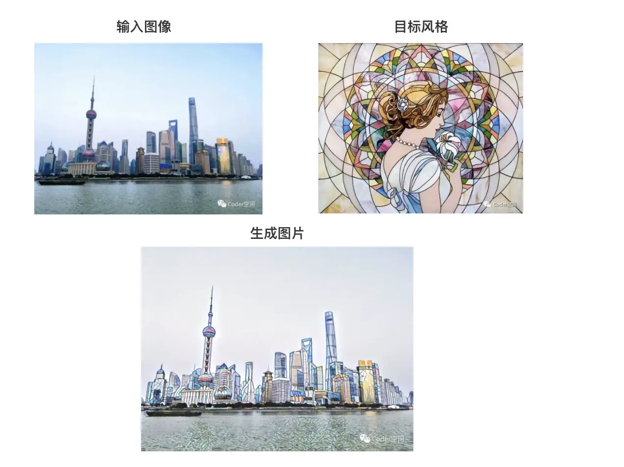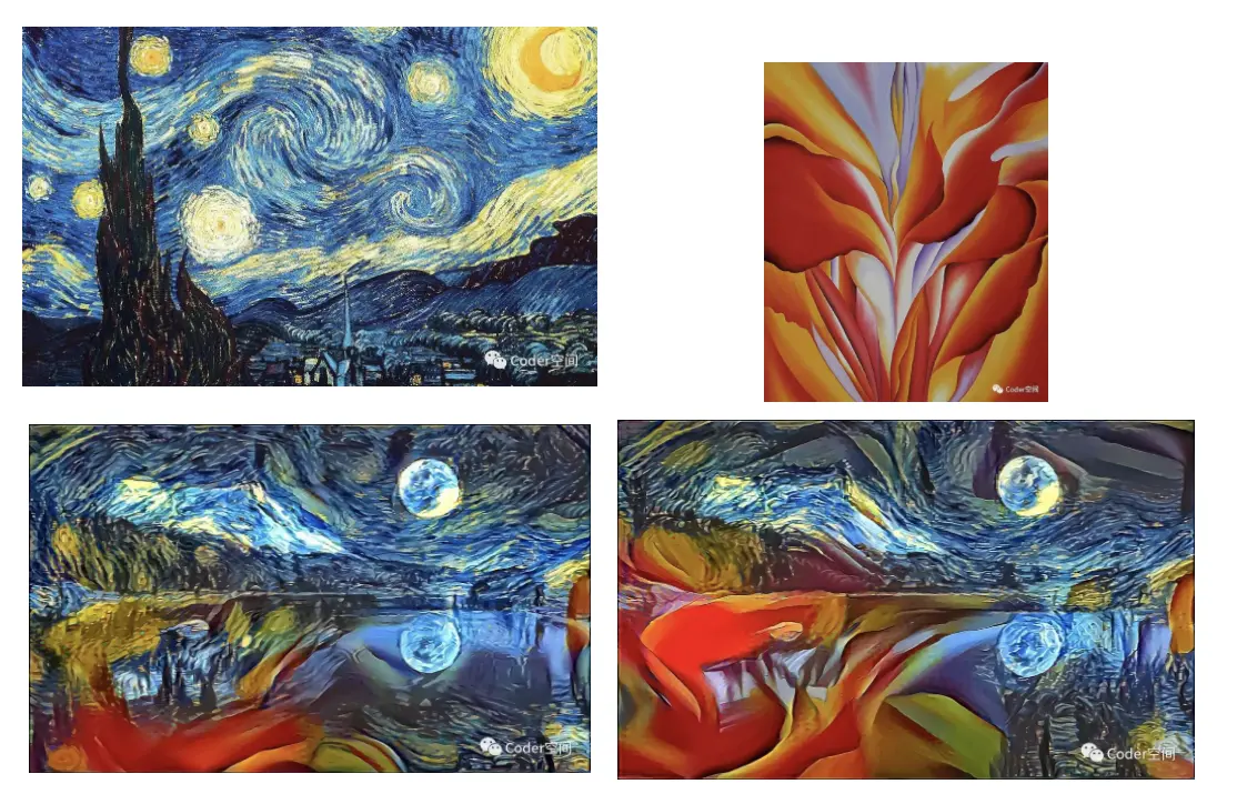 所以图像风格迁移一般指的是把图片特征中的风格部分迁移应用到目标图片的过程。整个迁移处理的输入分别有内容图和风格图,输出就是风格迁移后的结果图。应用图像风格迁移后,可以生成相同风格的图片。