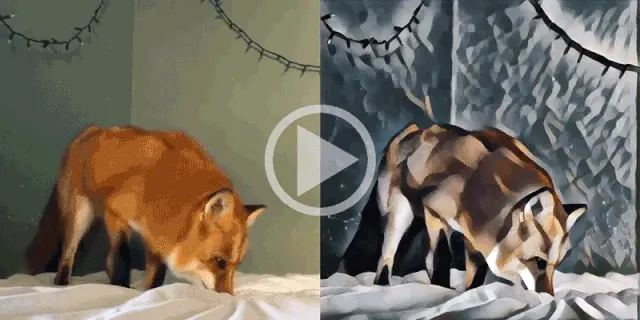 除了图片之外,我们甚至还可以应用到视频上去,实现视频风格的迁移,帮助我们实现更加丰富多变的视频效果。比如下面油画风格的小狐狸。