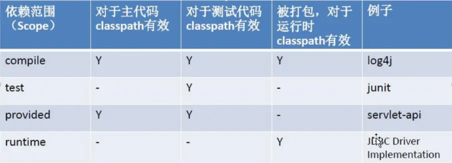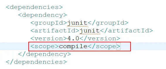 ⑤、scope:依赖的范围,默认值是 compile。后面会进行详解。