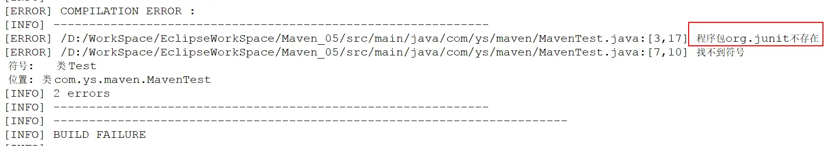 我们在 src/main/java 包下新建 MavenTest.java,并导入 Junit 包