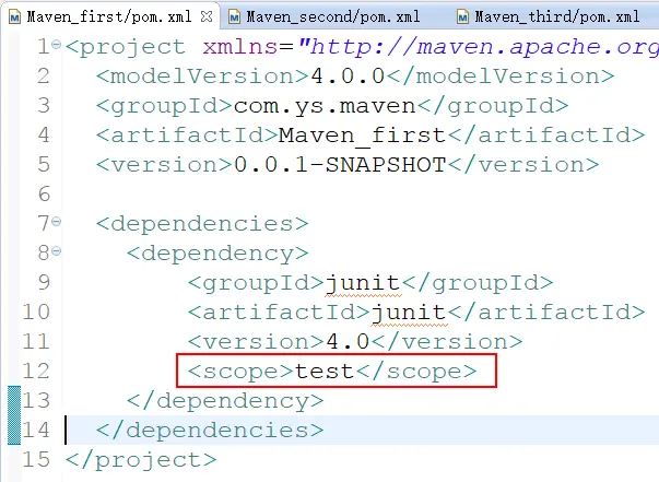 ③、groupId,artifactId和version:依赖的基本坐标,对于任何一个依赖来说,基本坐标是最重要的,Maven根据坐标才能找到需要的依赖。