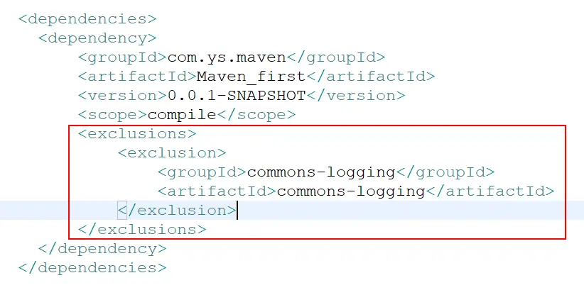 ⑦、exclusions:用来排除传递性依赖,后面会进行详细介绍。