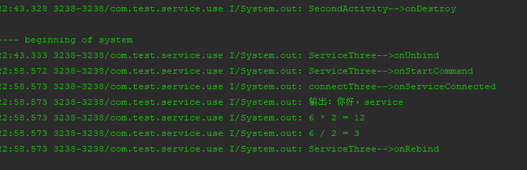第一次点击bind_service按钮后,我们会看到以下输出。注意:如果在service 中的
