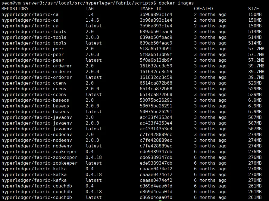 Fabric的docker镜像下载我们这里仍然使用bootstrap.sh脚本实现(如果对docker操作熟悉的同学也可以直接使用docker命令下载),通过脚本参数设置使该脚本只下载Fabric的docker镜像。执行如下命令: