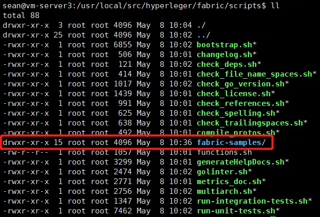 下载成功后,scripts目录下将生成一个fabric-samples目录,如下图所示: