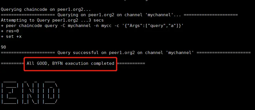 至此,我们的第一个fabric网络就启动了。各位读者如果有时间一定要仔细阅读byfn.sh脚本,该脚本实现了启动一个网络,并完成链码调用测试的整个过程。