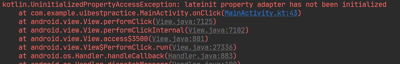 当然,使用 lateinit 关键字也不是没有任何风险的,如果在 adapter 变量没有初始化的情况下就使用它,那么程序就会崩溃并抛出异常。