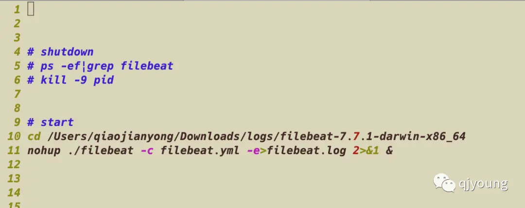 tar -xvf filebeat-7.7.1-darwin-x86_64.tar.gz 编写启动脚本start.sh,如下(可能有更高效的方法)