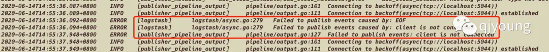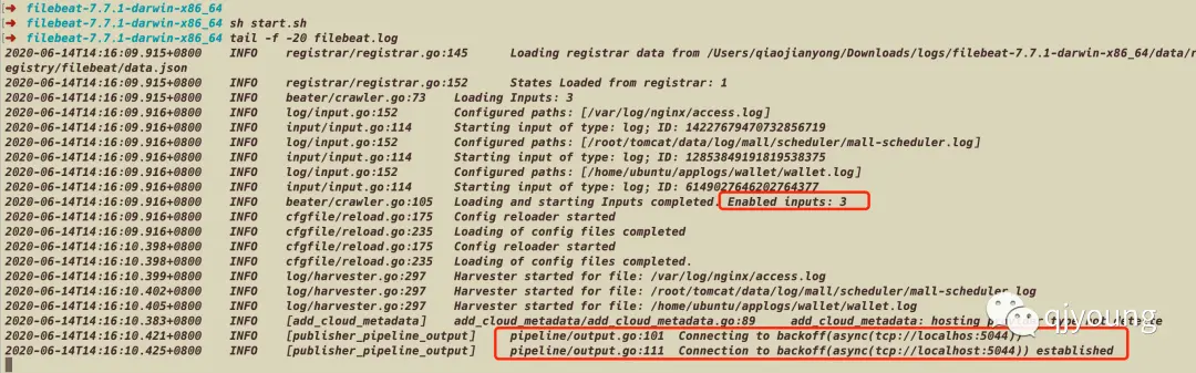 一共加载了三个启用的输入源,并成功连接到了5044端口