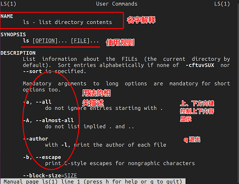 例:查看ls命令详情,man ls