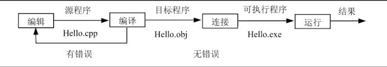2.编译 编辑好的源程序必须经过编译,翻译成计算机能够识别的机器代码,计算机才能执行,这些二进制代码称为目标代码。将这些目标代码以.obj 为扩展名保存在磁盘中,称为目标程序。 编译阶段主要是分析程序的语法结构,检查 C++ 源程序的语法错误。如果分析过程中发现有不符合要求的语法错误,就会及时报告给用户,将错误类型显示在屏幕上。