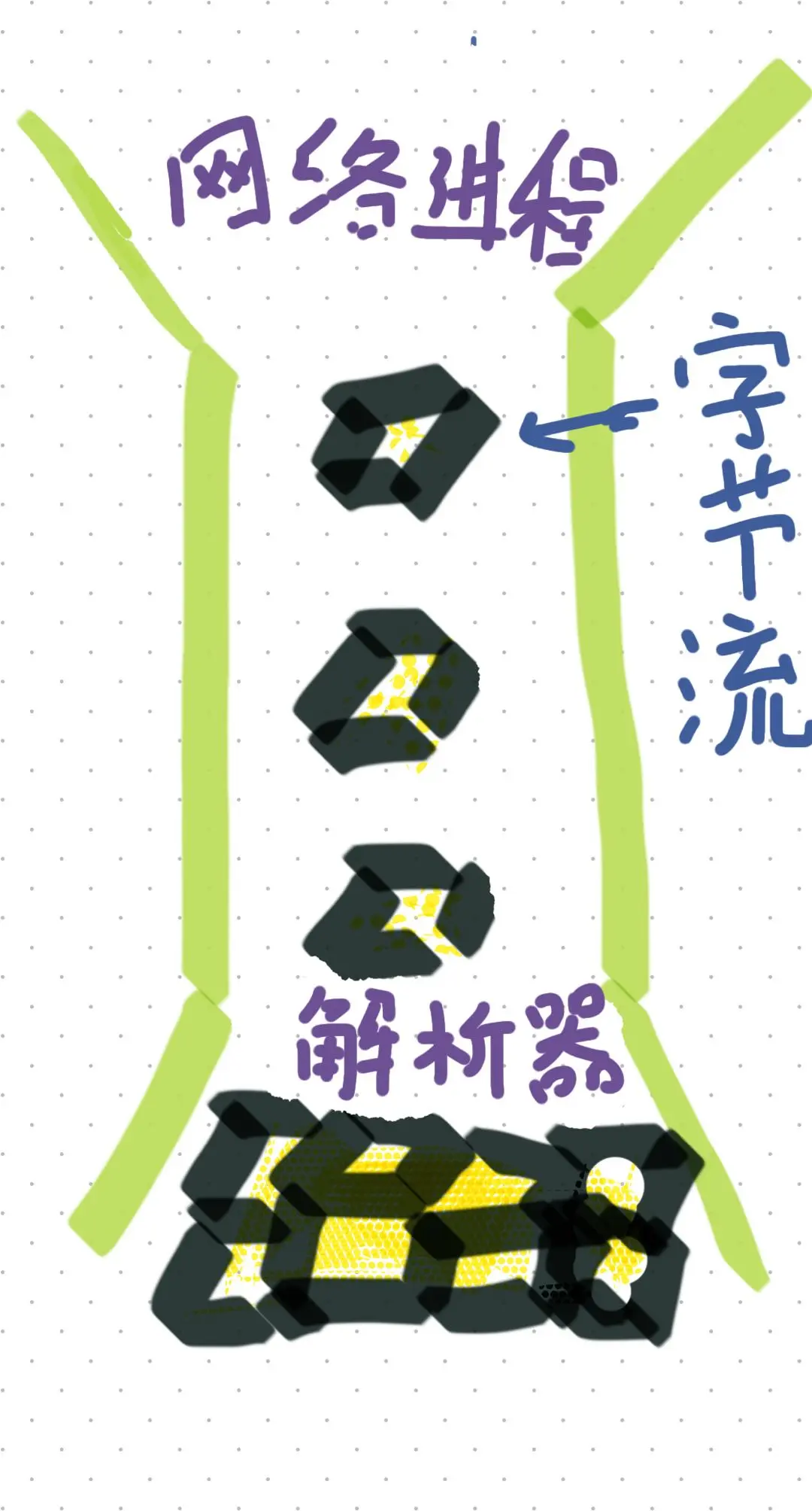 生产中我们会通过网络请求到需要的页面,浏览器通过响应头中的content-type:text/html字段判断出是一个HTML类型的文件,然后为该请求选择或者创建一个渲染进程。渲染进程准备好后,网络进程和渲染进程之间会建立一个共享的管道,你可以想象网络进程把源源不断的数据放入管道,而渲染引擎在管道另一头接受,渲染引擎中的HTML解析器会动态的接受字节流,将其解析成DOM。