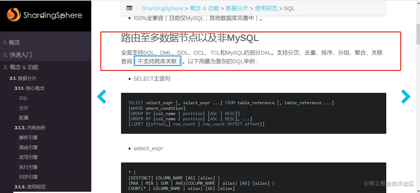 如果一定要使用联合查询SQL,那么需要将联合查询中所有的表都进行分库,并且分库时选择的分片键字段需要一致,并将表设置为 绑定表 ,提升联合查询速度;