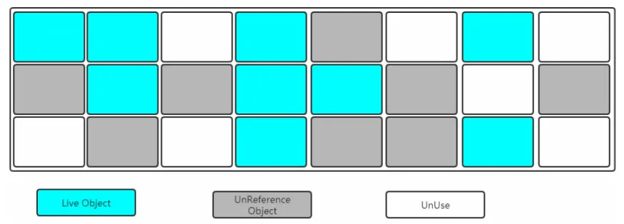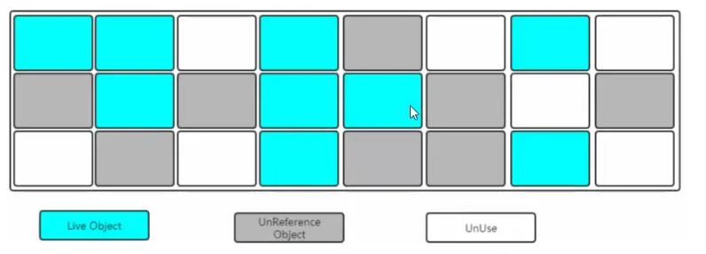 - 标记-整理 优点:不会产生空间碎片,能有大段空白的内存空间 缺点:算法麻烦复杂,且执行耗时
