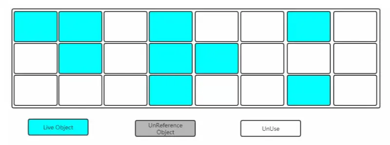 - 标记-回收 优点:算法简单 缺点:耗时,因为要扫描整个内存空间,且会产生空间碎片。