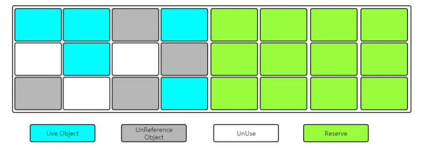 - 空间整合(整体上属于“标记-整理”算法,不会导致空间碎片)
