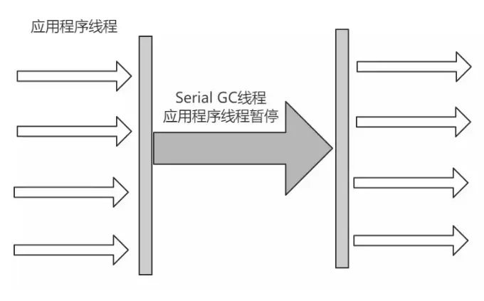 它是一种单线程收集器,不仅仅意味着它只会使用一个CPU或者一条收集线程去完成垃圾收集工作,更重要的是其在进行垃圾收集的时候需要暂停其他线程。
